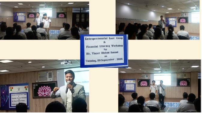 As part of the Financial Literacy initiative, students attended an insightful session conducted by entrepreneur Vineet Bansal, who provided practical knowledge on saving, insurance, investments, and digital finance and engaged students deeply with real-world financial concepts.