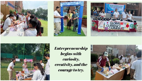 A special highlight of the event was the Global Currency Booth, where students creatively introduced peers and parents to the currencies, cultures, and traditions of Japan, the UK, the UAE, and China. It became a space where geography, economics, cultural studies, and global awareness blended seamlessly into an engaging learning experience.