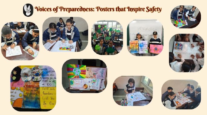 Students actively participated in a Poster and Slogan Campaign that highlighted the themes of disaster safety, global cooperation, and humanitarian responsibility. Through colourful illustrations and impactful slogans, they creatively expressed ideas about preparedness, compassion, and unity during times of crisis. The posters reflected students’ understanding of how communities can reduce risks and respond effectively when faced with emergencies.