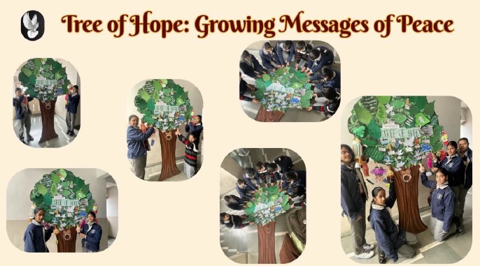 Students participated in a meaningful activity titled Tree of Hope, where they came together to create a symbolic display representing peace, unity, and optimism for the future. Through colourful leaves, messages, and creative artwork, students expressed their thoughts about harmony, compassion, and the importance of living together in a peaceful world. Each leaf carried a message of kindness, safety, or cooperation, reflecting the students’ understanding that small positive actions can contribute to building stronger and more caring communities.