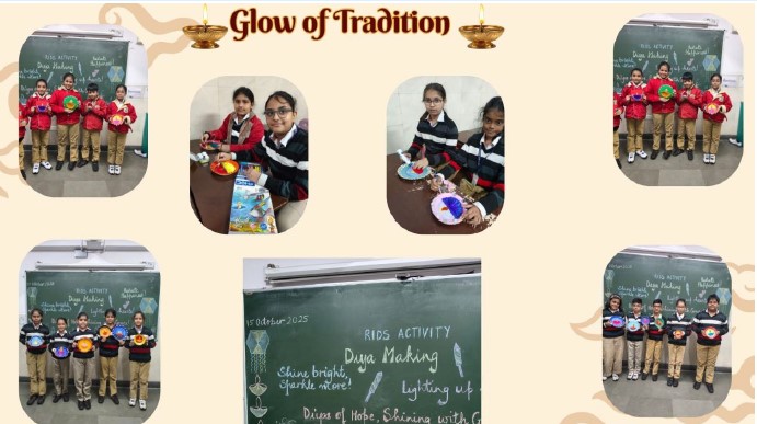 The activity encouraged artistic expression, patience, and creativity while helping students connect with traditional Indian customs and celebrations. It also gave them an opportunity to understand how simple cultural symbols carry deep meanings and values in everyday life. By the end of the workshop, students proudly displayed their beautifully decorated diyas and carried with them a sense of joy, cultural appreciation, and festive spirit.