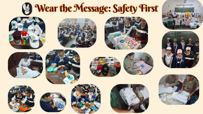 Students expressed their creativity and social awareness by designing campaign T-shirts and caps carrying impactful slogans and symbols related to disaster safety, peace, and global unity. Drawing inspiration from their research on disaster preparedness in India, Japan, and South Korea, they created designs that reflected solidarity, resilience, and responsibility during emergencies. Through the thoughtful use of colours, symbols, and meaningful messages, students explored how visual communication can effectively convey powerful ideas and encourage communities to stay alert and prepared.